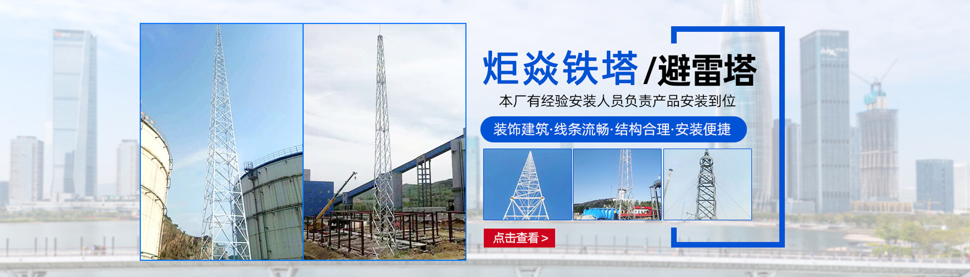 棗強炬焱環保科技有限公司主要產品有:5G基站配套產品、避雷塔、監控塔、監控桿、瞭望塔、微波塔、消防訓練塔、煙筒塔等鐵塔產品,集設計、制造、施工安裝于一體。產品主要銷往部隊、移動、聯通、水利、石油、煤碳、冶金、廣播電視等部門,行銷全國30個省市自治區。